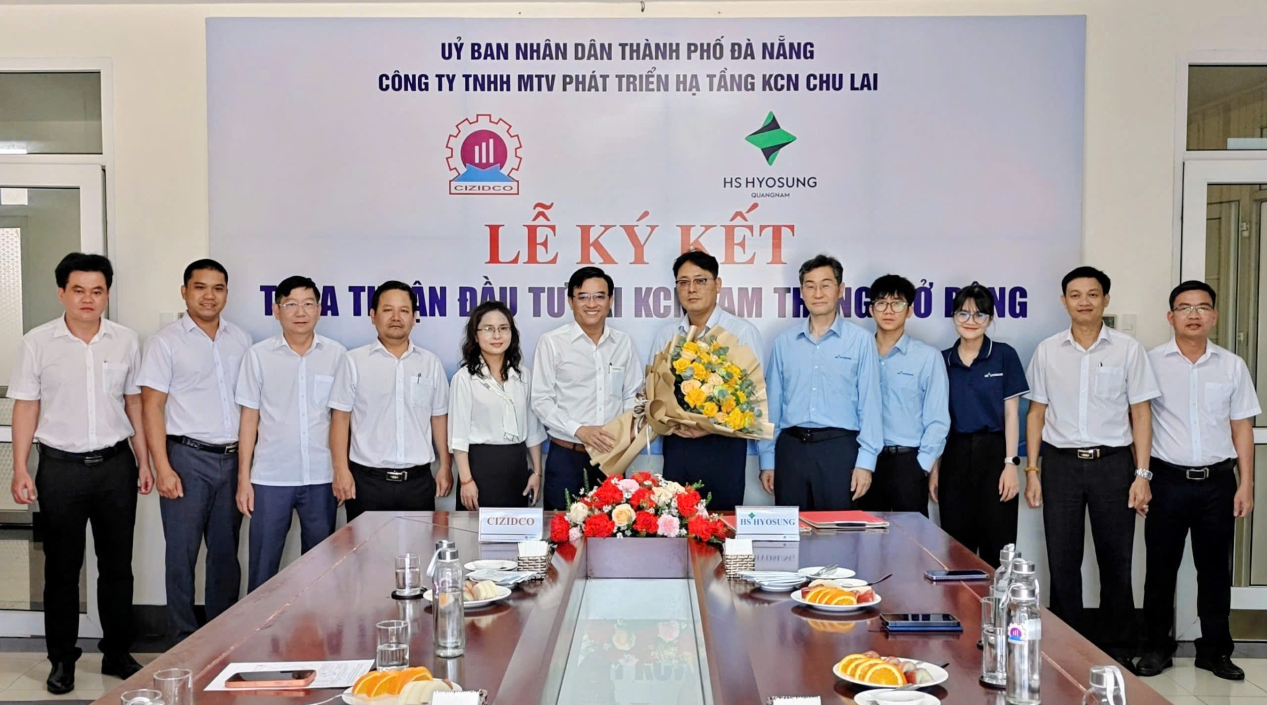 Ngày 08/6/2022, tại Văn phòng Công ty TNHH MTV Phát triển hạ tầng KCN Chu Lai (CIZIDCO) diễn ra Lễ ký kết thỏa thuận hợp tác đầu tư tại KCN Tam Thăng mở rộng giữa Công ty TNHH MTV Phát triển hạ tầng KCN Chu Lai (CIZIDCO) và Công ty TNHH Hyosung Quảng Nam (Hyosung Quảng Nam). Tại buổi Lễ ký kết thỏa thuận hợp tác đầu tư, HYOSUNG mong muốn CIZIDCO sớm đẩy nhanh tiến độ triển khai KCN Tam Thăng mở rộng để có mặt bằng sạch 41 ha cho HYOSUNG thực hiện 02 dự án đầu tư với tổng vốn đầu tư 380.000.000 USD (Ba trăm tám mươi triệu đô la Mỹ) nâng tổng diện tích thực hiện đầu tư của Hyosung lên 59ha/100ha và tổng vốn đầu tư 625 triệu USD/1.3 tỷ USD đã đăng ký.
